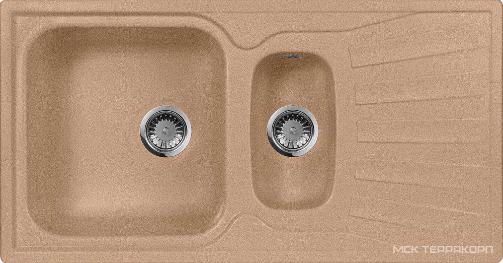 Мойка кухонная встраиваемая сверху AquaGranitEx m-09к Мойка кухонная AquaGranitEx M-09к песочная| 49x94x19