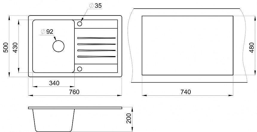 Мойка кухонная встраиваемая сверху Granula standart Мойка кухонная Granula Standart ST-7602 классик| 50x76x20
