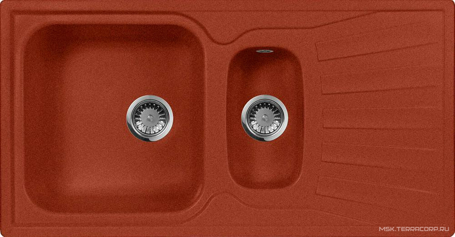 Мойка кухонная встраиваемая сверху AquaGranitEx m-09к Мойка кухонная AquaGranitEx M-09к красный марс| 49x94x19