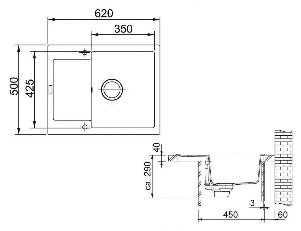 Мойка кухонная встраиваемая сверху Franke maris Мойка кухонная Franke Maris MRG 611С графит| 50x62x20