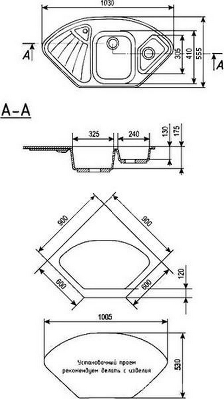 Мойка кухонная встраиваемая сверху Ulgran u-501 Мойка кухонная Ulgran U-501-308 черная| 55x103x17