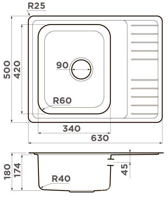 Мойка кухонная встраиваемая сверху Omoikiri Sagami Мойка кухонная встраиваемая сверху, 63x50x18 см, сифон в комплекте, нержавеющая сталь ZZ