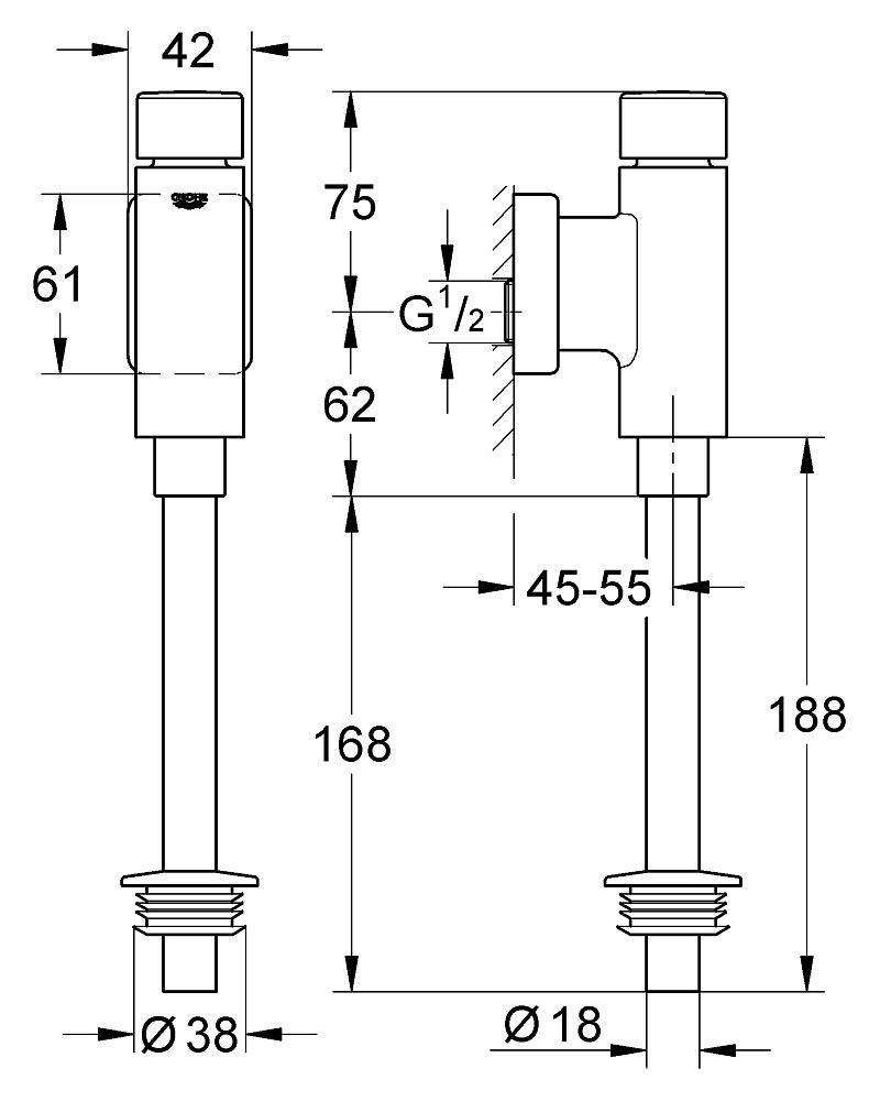 Комплектующие для писсуара Grohe Rapid SL Смывное устройство для писсуара, подключение 1/2, без предохранителя, хром ZZ