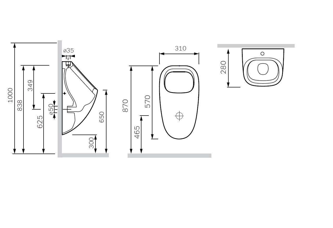 Писсуар подвесной AMPM Spirit 2.0 Писсуар AM.PM Spirit V2.0 C707006WP подвесной, с внешним подводом воды, с декором| 31x57x28
