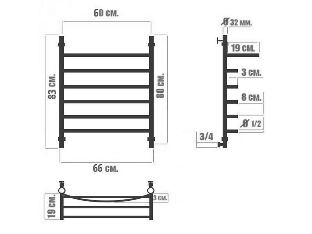 Полотенцесушитель электрический Ника Л90 Полотенцесушитель Л90П ВП 800x600 мм, (с полкой) электрический, MEG 1 , ТЭН справа, цвет белый RAL 9003 XX