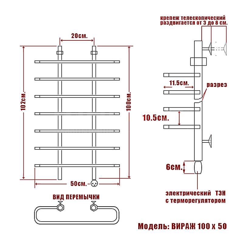 Полотенцесушитель электрический Ника Вираж Полотенцесушитель "Л" Вираж 1000*500 мм, электрический, установочный набор в комплекте XX