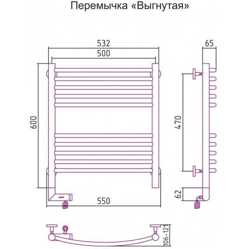 Полотенцесушитель электрический Сунержа Богема Полотенцесушитель "Богема 2.0" 600x500 мм, выгнутая перекладина, электрический, пульт слева, в компл. 4 телескоп.кроншт. цвет белый (RAL-9003) ZZ