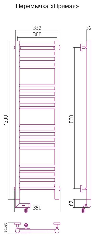Полотенцесушитель электрический Сунержа Богема Полотенцесушитель "Богема 2.0" 1200x300 мм, прямая перекладина, электрический, пульт справа, в компл. 4 телескоп.кроншт. цвет хром ZZ