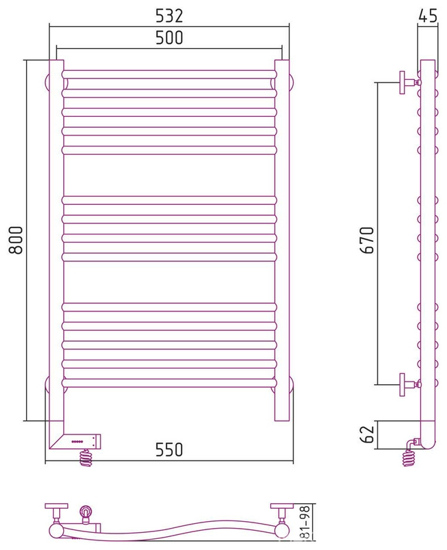 Полотенцесушитель электрический Сунержа Флюид Полотенцесушитель "Флюид 2.0" 1200*500 мм, электрический, пульт управления слева, в комплекте 4 телескоп.кроншт. хром ZZ