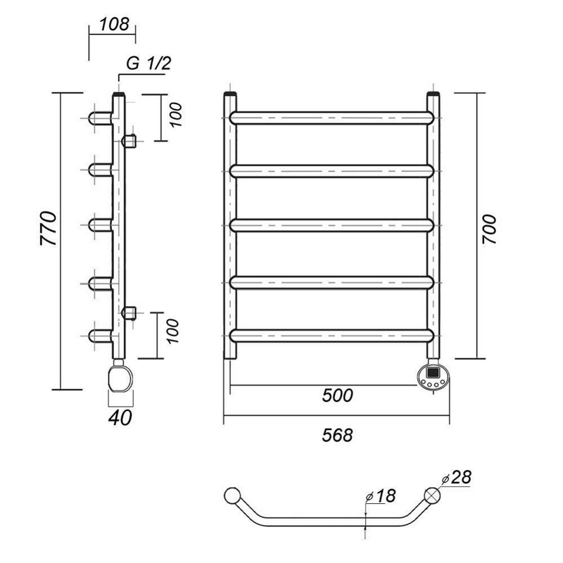 Полотенцесушитель электрический Domoterm Лаура Полотенцесушитель "Лаура"/П5, 700*500 мм, электрический, пульт справа, комплектующие в комплекте, цв.бронза ZZ