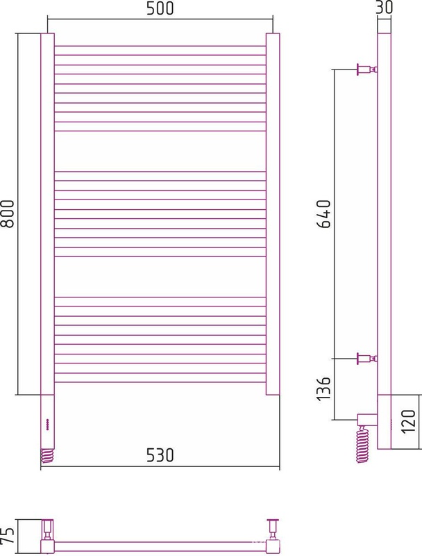 Полотенцесушитель электрический Сунержа Модус Полотенцесушитель электрический "МОДУС 3.0"800х500 мм, подключ. 3/4, комплектующие в комплекте, левый, хром ZZ