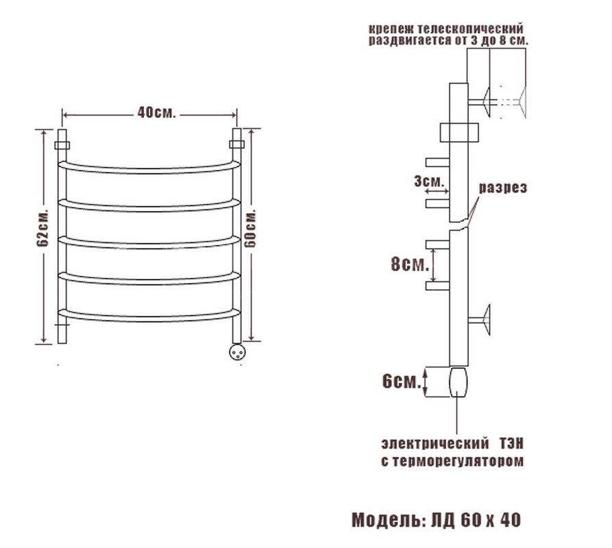 Полотенцесушитель электрический Ника ЛД Полотенцесушитель "ЛД" 600*400 мм электрический, скрытый монтаж , пульт справа, АнтикБронза, XX
