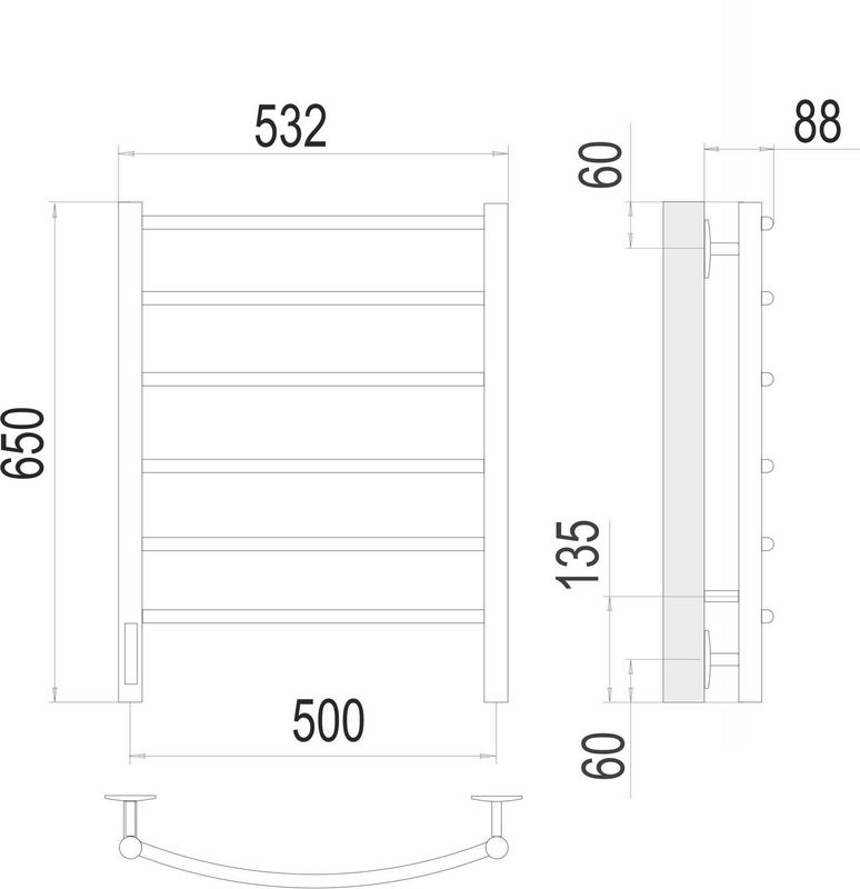 Полотенцесушитель электрический Terminus Классик Полотенцесушитель электрический (quick touch) "Классик" 500х650 мм, пульт слева, установочный набор в комплекте ZZ