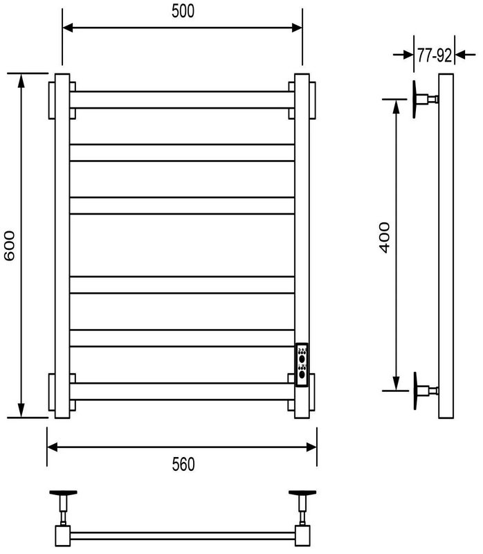 Полотенцесушитель электрический Veconi Barro-A Полотенцесушитель электрический Barro-A, 50х60, скрытое подключение, шнур с вилкой, цв. хром, ZZ