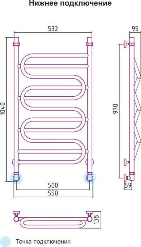 Полотенцесушитель "" 500*1000 мм, подключ. 3/4, в компл. 2 декор. колпачка, 2 кр. Маевского, 2 уголка, 2 телескоп.кроншт. XX Сунержа Иллюзия 00-0110-1050