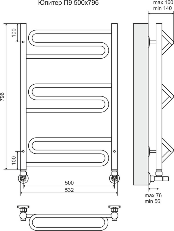 Полотенцесушитель водяной Terminus Юпитер Полотенцесушитель "Юпитер", 500x h800 мм/ П9, установочный набор в компл., БЕЗ уголков и отражателей ZZ