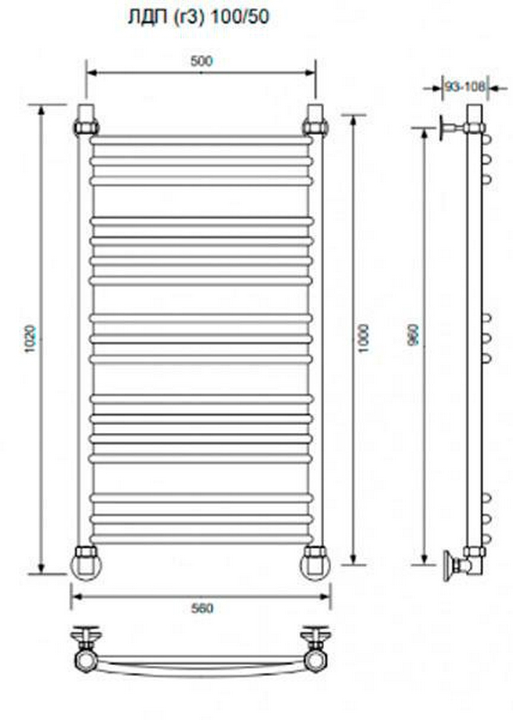 Полотенцесушитель водяной Ника ЛДП Полотенцесушитель "ЛДП" гр3 500*1000 мм,водяной, RAL9016, белый, вентили в комплекте, ZZ