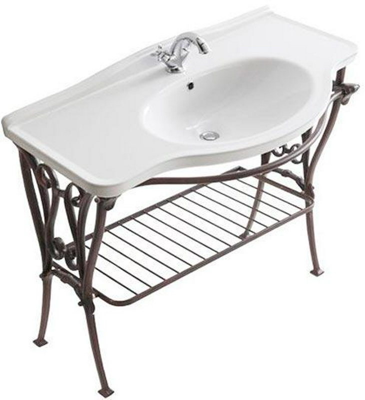Структура напольная для раковины 110см, с полотенцедержателем и полкой-решёткой (металл цв. алюминий античный), крепёж в компл., ZZ Galassia Ethos 8448