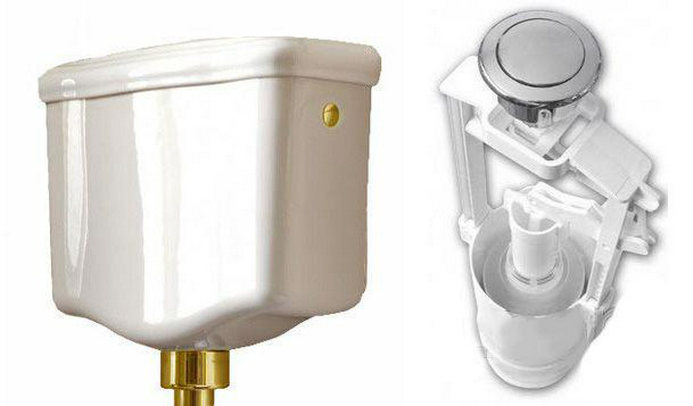 Механизм смыва для "Среднего" бачка унизаза, (кнопка цв.золото), Kerasan ZZ Kerasan Универсал 751391