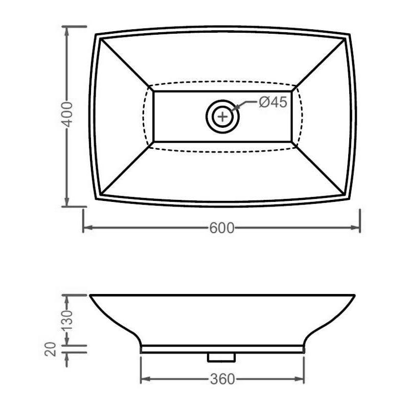 Раковина накладная ArtСeram Jazz Раковина накладная на столешницу, прямоугольная, 600х400хh130мм, без отв.д/смесит., без перелива, (цв. белый), Jazz ZZ