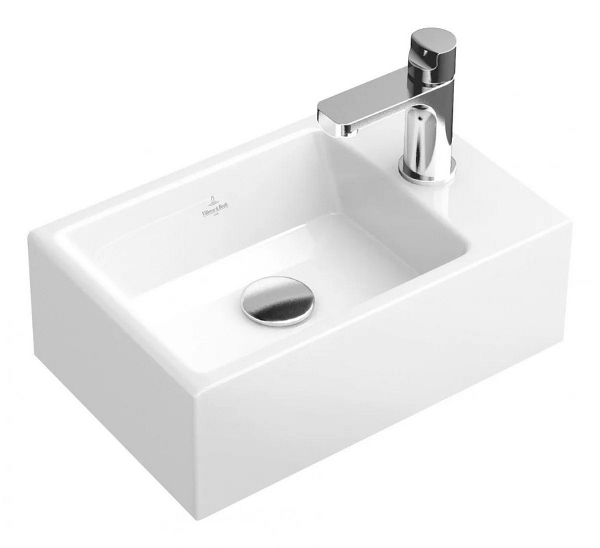 Раковина накладная Villeroy & Boch Memento Раковина 400х260хh140мм, для устан. на мебель, 1 отв. д/смес справа, без перелива, крепеж, шаблон в компл, (цв. 01 White), Memento ZZ