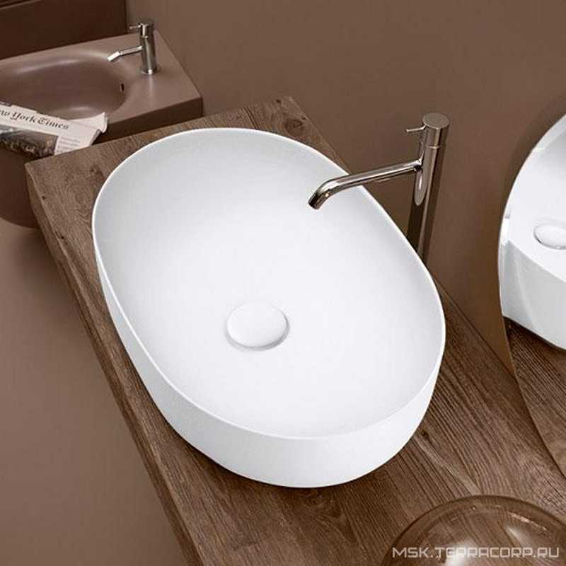 Раковина накладная Kerasan Nolita Раковина накладная на столешницу, овальная 60х40см, без отв.д/смесит., без перелива, (цв.белый), Nolita ZZ
