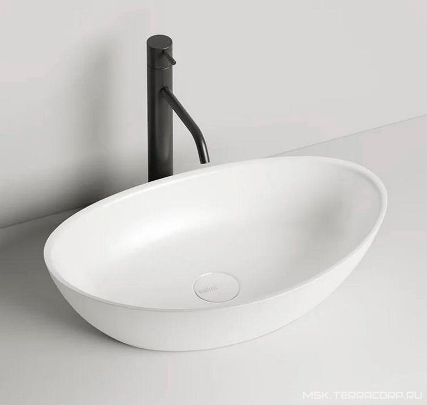 Раковина накладная Salini Noemi Раковина накладн. на столешн,овал.555х340хh150мм,без отв.д/смес,без перелива,литой камень S-Stone, матов цв.белый, Noemi