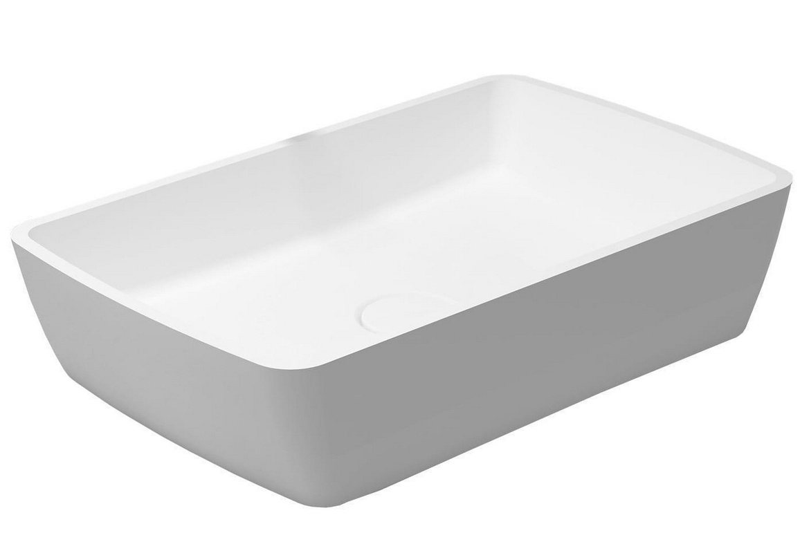 Раковина накладная на столешницу, прямоугольн. 600х450хh133мм, с 1 отв.д/смес, без перелива, (литой камень S-Stone матовая цв.белый), Ottavia