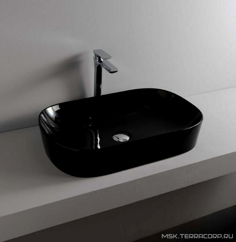 Раковина накладная на столешницу, овальная 680х350хh150мм, без отв.д/смесит., без перелива, (цв. glossy black), Cognac ZZ