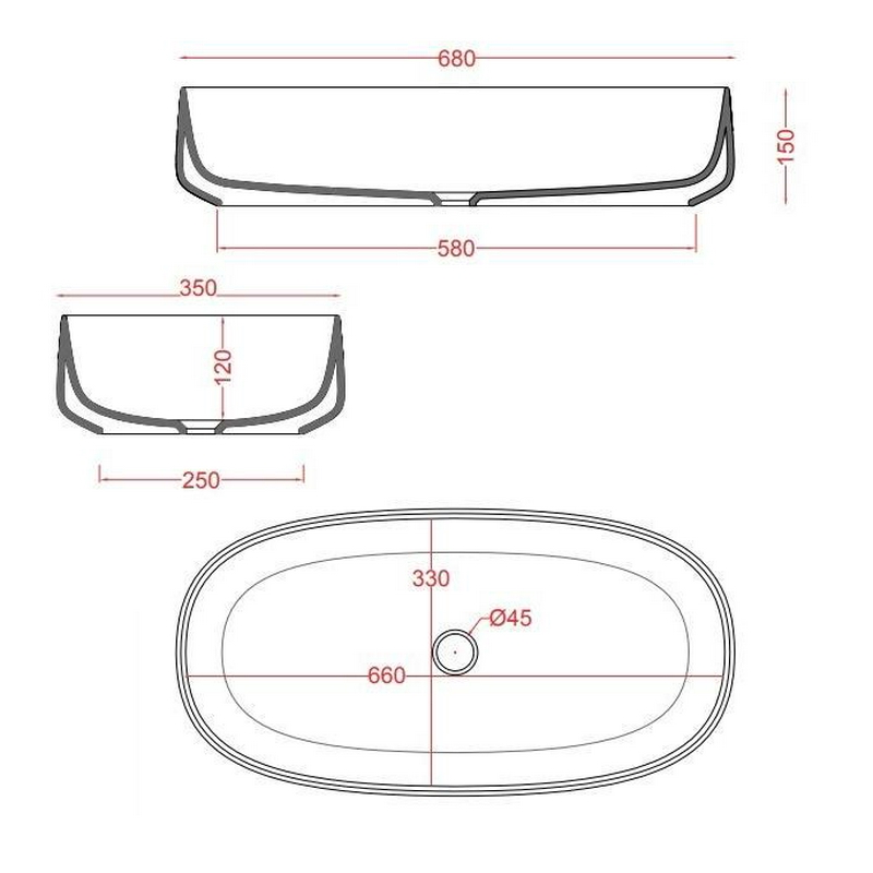 Раковина накладная ArtСeram Cognac Раковина накладная на столешницу, овальная 680х350хh150мм, без отв.д/смесит., без перелива, (цв. glossy black), Cognac ZZ