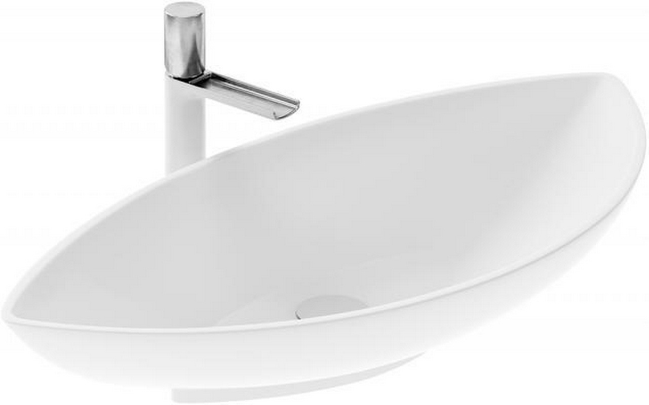 Раковина накладн. на столешн,овал.580х345хh140мм,без отв.д/смес,без перелива,литой камень S-Stone, матов цв.белый, Paola