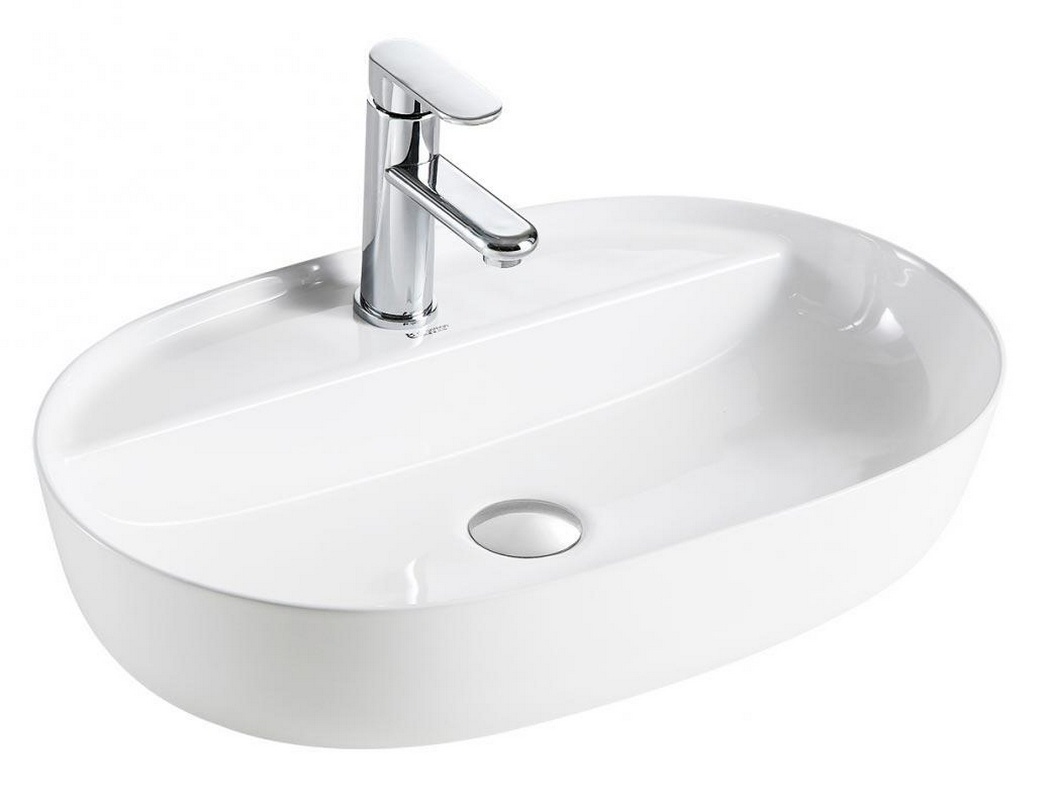 Раковина накладная на столешницу, овальная 650х415хh125мм, без отв.д/смесит., без перелива, (цв. белый), Ghost