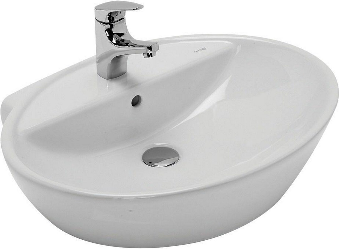 Раковина накладная 60х36 см, без отверстия для смесителя, цв.белый