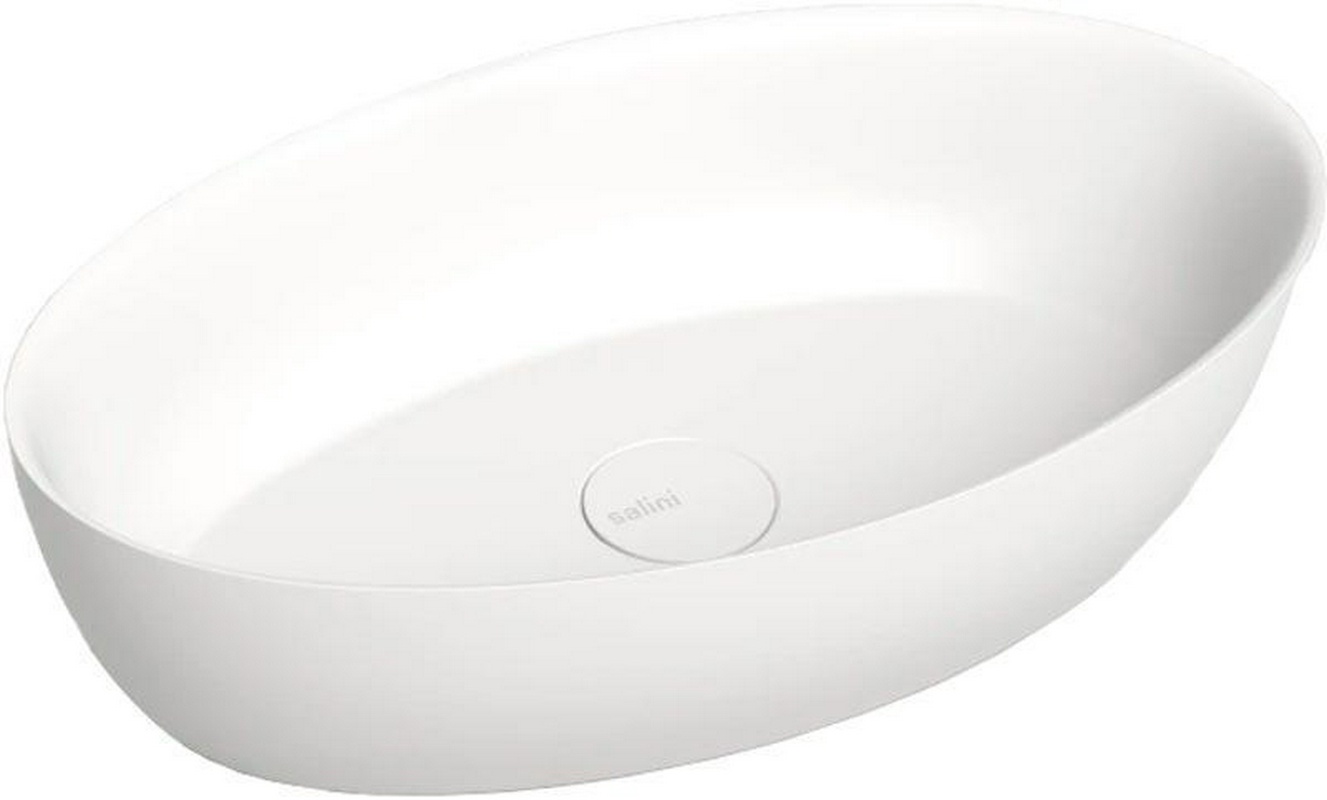 Раковина накладная овальная 580х350х150мм, без отв.д/смесителя, перелива, литой камень S-Sense глянец цв.белый, 01 ZZ Salini Alda 110611G
