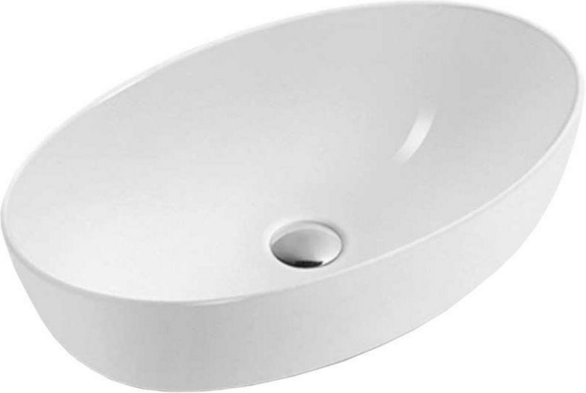 Раковина накладная на столешницу, овальная 650х415хh125мм, без отв.д/смесит., без перелива, (цв. белый), Ghost
