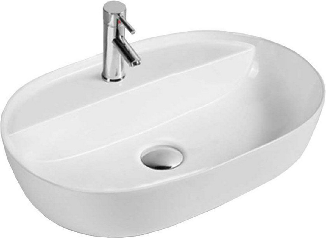 Раковина накладная на столешницу, овальная 650х415хh125мм, без отв.д/смесит., без перелива, (цв. белый), Ghost