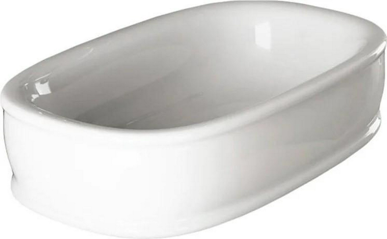 Раковина накладная на столешницу, овальная 650х415хh125мм, без отв.д/смесит., без перелива, (цв. белый), Ghost