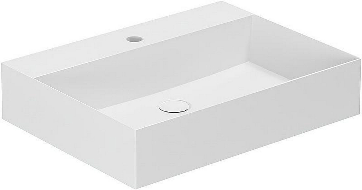 Раковина накладная на столешницу, прямоугольн. 600х450хh133мм, с 1 отв.д/смес, без перелива, (литой камень S-Stone матовая цв.белый), Ottavia