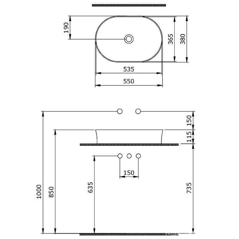Раковина накладная Berges Ego Раковина 55х38 cм, накладная БЕЗ отверстия под смеситель, цв.белый, KL