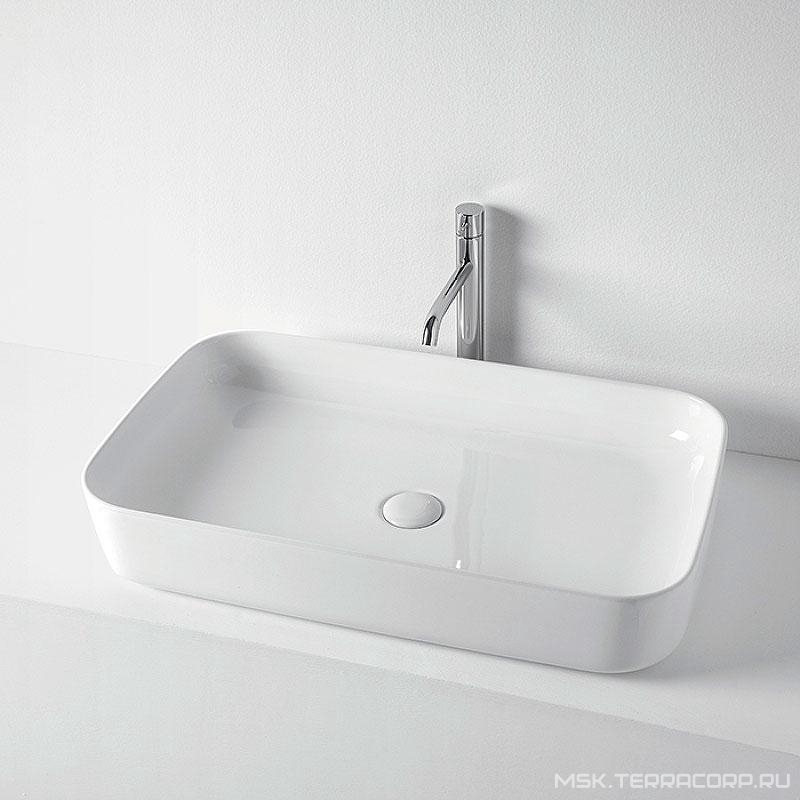 Раковина накладная Kerasan Tribeca Раковина накладная на столешницу, прямоуг. 70х43хh12см, без отв.д/смесит., без перелива, (цв.белый глянец), Tribeca ZZ