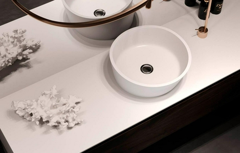 Раковина накладная Holbi Almatea Раковина накладная 420х420х150мм, без отверст. для смесит., без перелива, д/к в цвет раковины в компл.,(иск.камень Soft rock цв.белый мат), Almatea ZZ