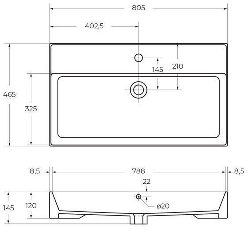 Раковина накладная Cezares Универсал Раковина (ПРОДАЖА ТОЛЬКО С БАЗОЙ ПОД РАК.) 800x465мм, с 1 отв.д/смесит., с переливом, (керамика, цв.белый), Cezares ZZ