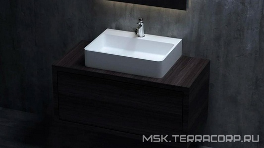 Раковина накладная Salini Ottavia Раковина накладная на столешницу, прямоугольн. 595х445хh125мм, с 1 отв.д/смес, без перелива, (литой камень S-Sense глянцевая цв.белый), Ottavia ZZ