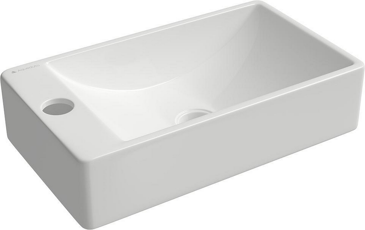Раковина мини, подвесная / накладная, прямоуг, 380x220хh100мм, 1 отв.д/смесит., Левая, без перелива, (цв.белый глянец), ZZ Aqueduto Pequeno PEQL0210
