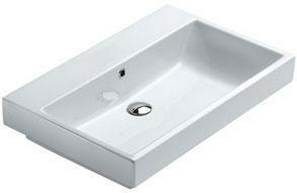 Раковина подвесная/накладная на столешницу, прямоугольная, 650х480хh160мм, с 1 отв.д/смесит., с переливом, без крепл., (цв. белый), Quadro