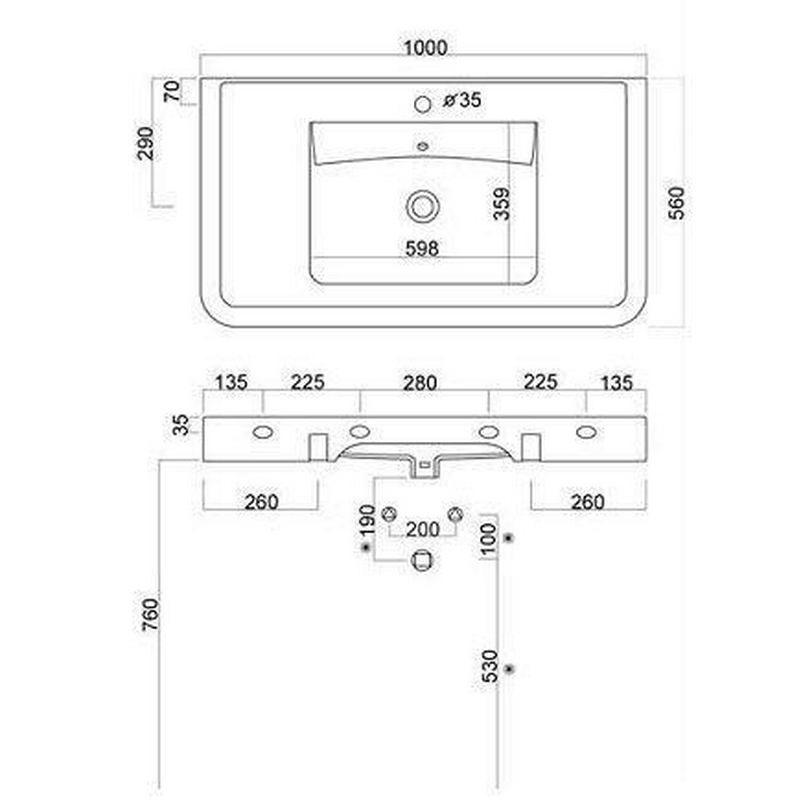 Раковина подвесная Ceramica Cielo Opera Раковина с 1 отв. д/смес., 100х56хh11см, (без крепл. арт. 54/A), хром. заглушка перелива в компл., Opera ZZ