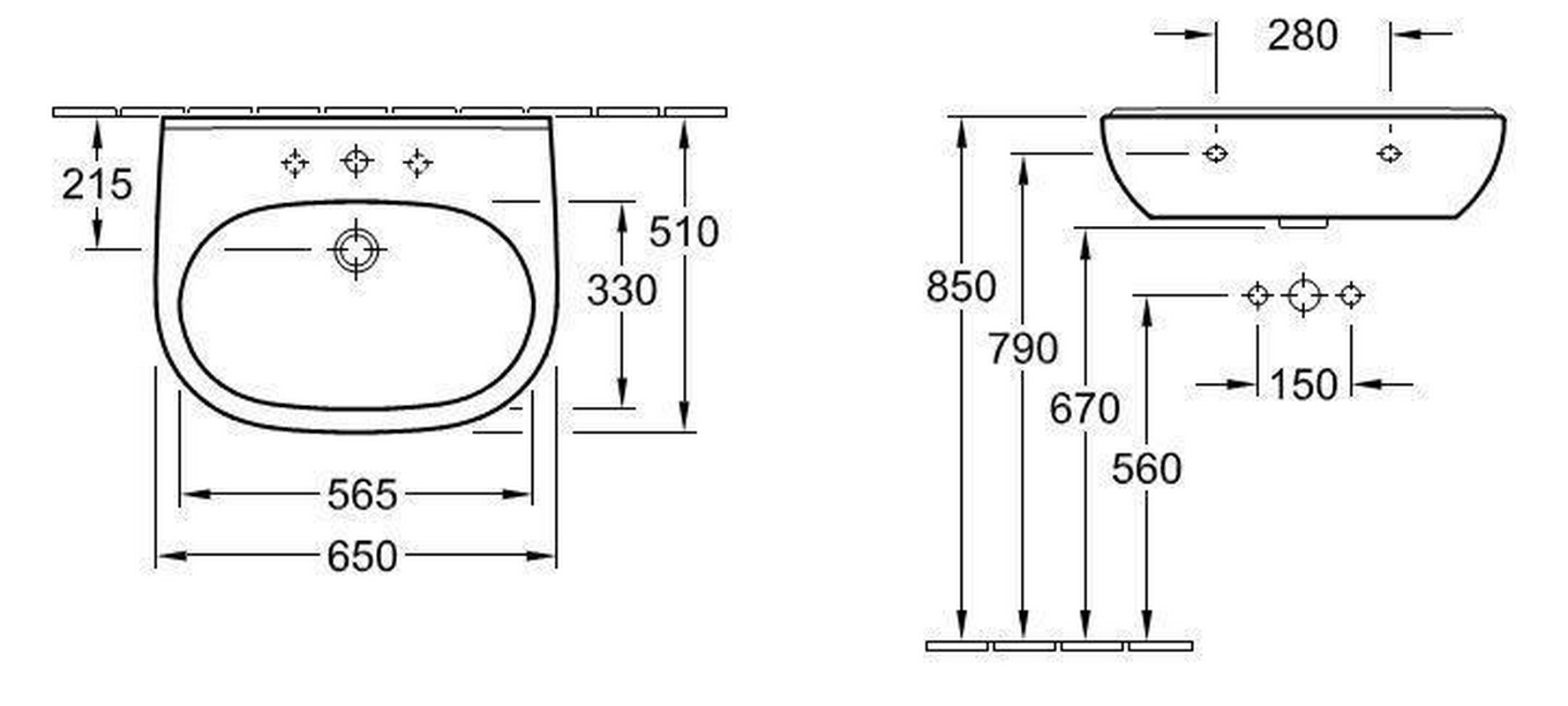 Раковина подвесная Villeroy & Boch O.Novo Раковина 650х510мм, с 1 отв.д/смесит., (цв. 01 белый) O.Novo ZZ