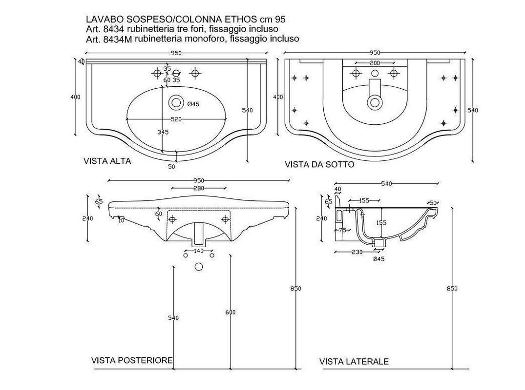 Раковина подвесная Galassia Ethos Раковина 95х54хh24см, с 1 отв.д/смесителя, (крепёж в копл.), Ethos ZZ