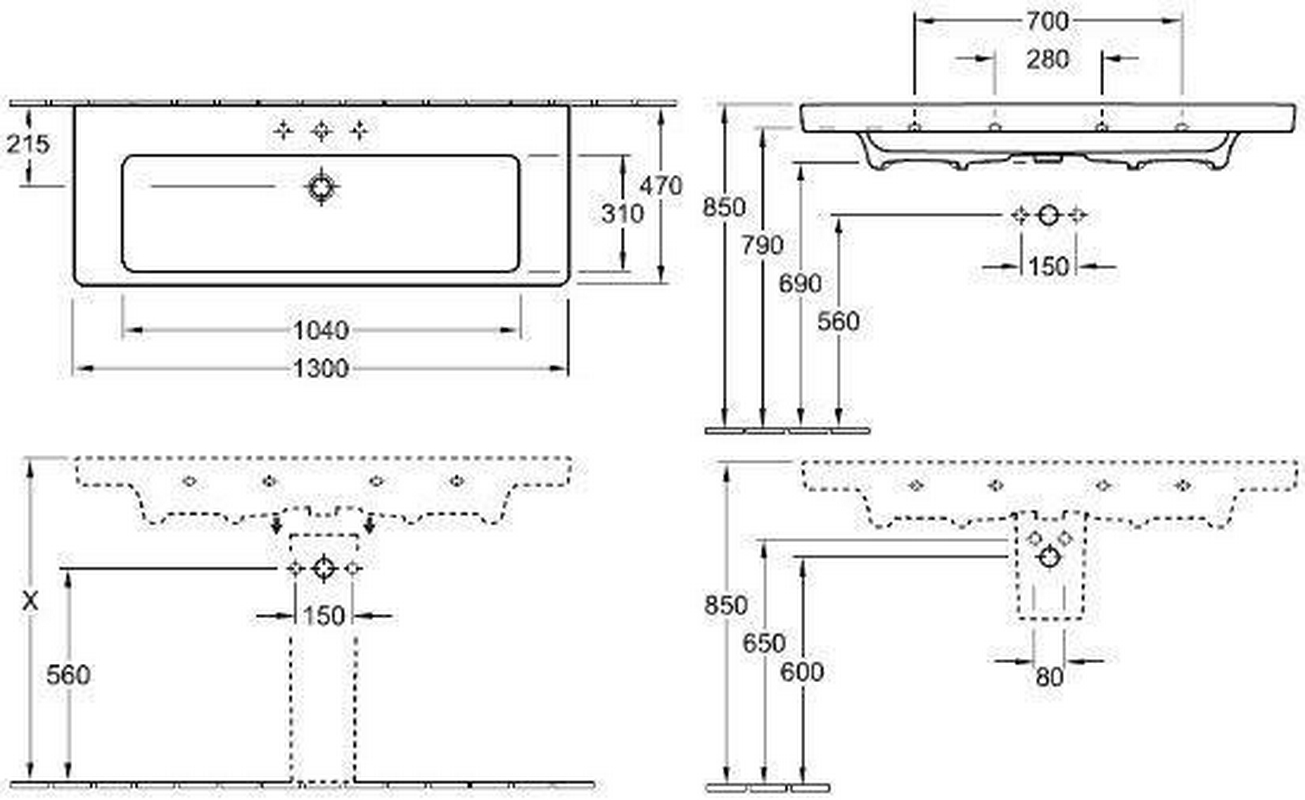 Раковина подвесная Villeroy & Boch Subway 2.0 Раковина 1300х470мм, с 1 отв.д/смесит., без крепл., (цв. R1 white ceramicplus), Subway 2.0 ZZ