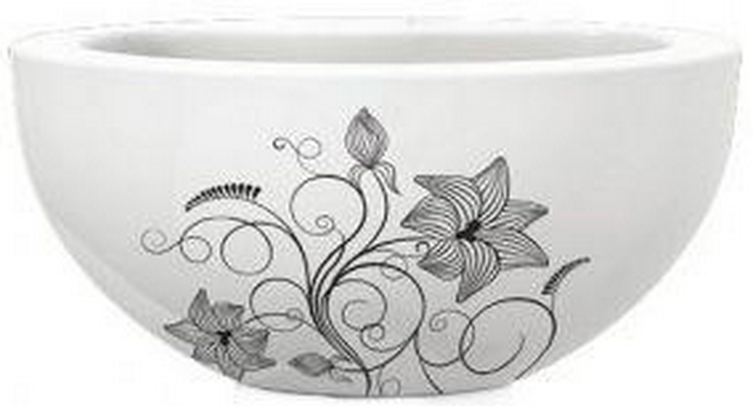 Раковина 480*480*225, с декором, черно/белая XX Sanita Luxe Art Flora ARTSLWB10